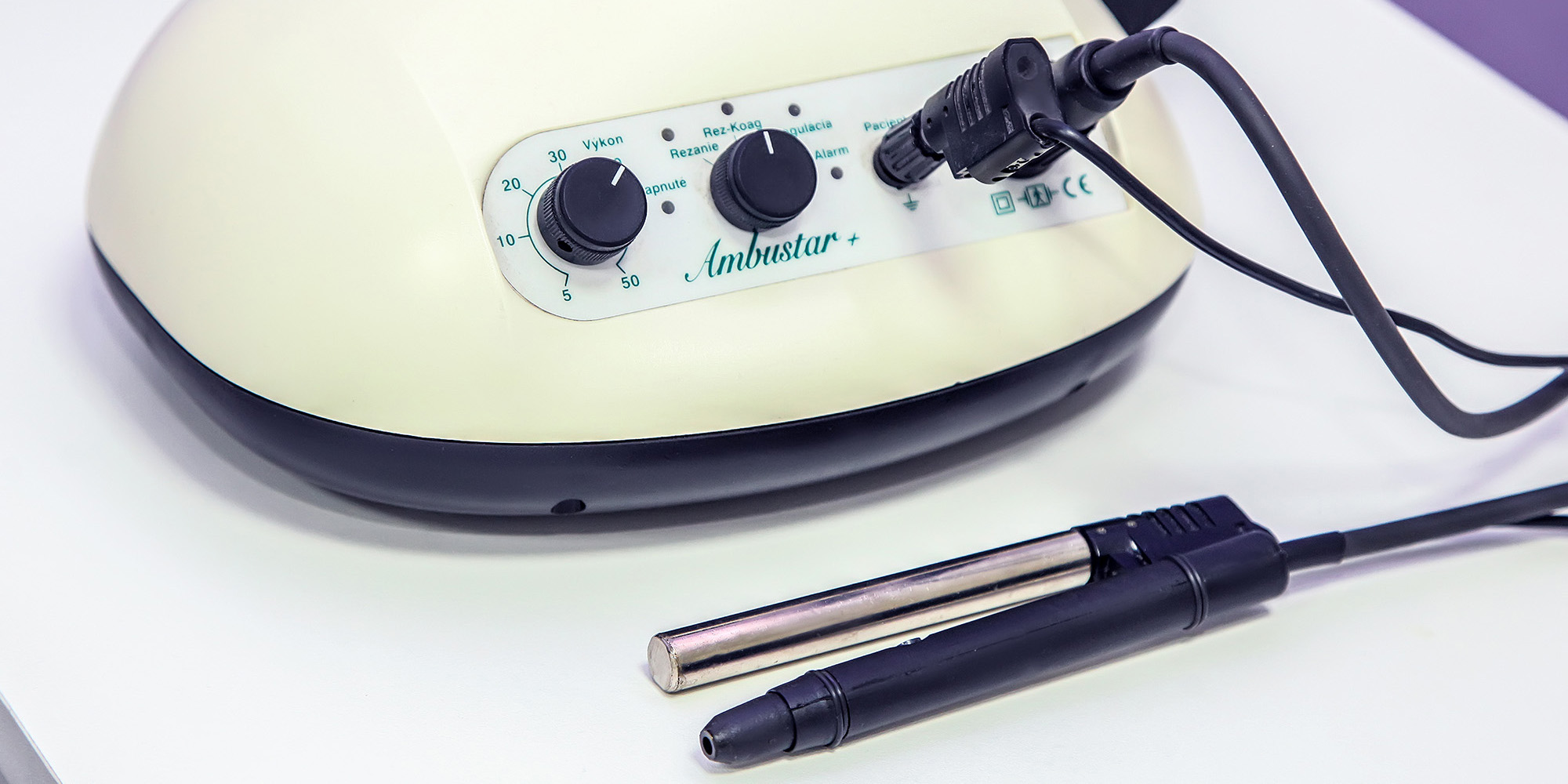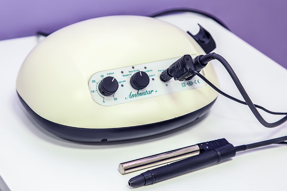 Vysokofrekvenčný kauter, ktorým pomocou elektrickej koncovky odstraňujeme rôzne povrchové výrastky na koži, odstránenie (fibrómov), odstránenie cievok, rezanie tkanív, zastavenie krvácania a podobne.